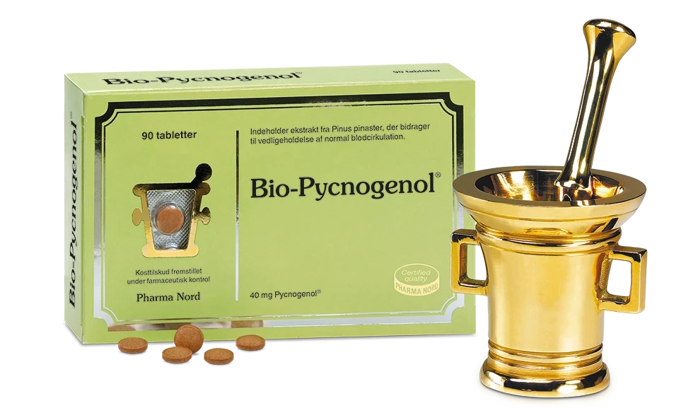 Vi har fundet Bio-pycnogenol – Tabl fra Pharma Nord hos Ren-velvaereshop.dk i kategorien Kosttilskud Særlige Behov Hud Hår Og Negle. Fremstillet af bark fra fransk strandfyr (Pinus pinaster)Indeholder en unik blanding af forskellige bioflavonoider og frugtsyrerHver tablet indeholder 40 mg standardiseret og patenteret ekstrakt.